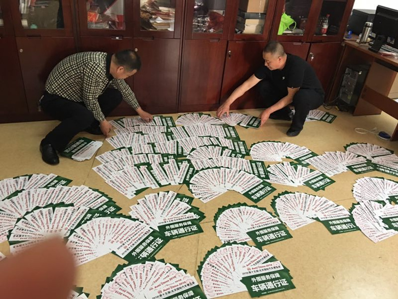 为保障车展期间车辆的通行,我们对院内、院外所有相关单位及周边居民进行了车辆统计,仅用三天的时间就完成了车证盖章、车号填写和车证发放工作。其中包含天房公司通行证1500张,外围保障通行证1500张。